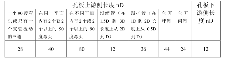 ?。?)孔板上下游所需直管長度不得小于以下要求: